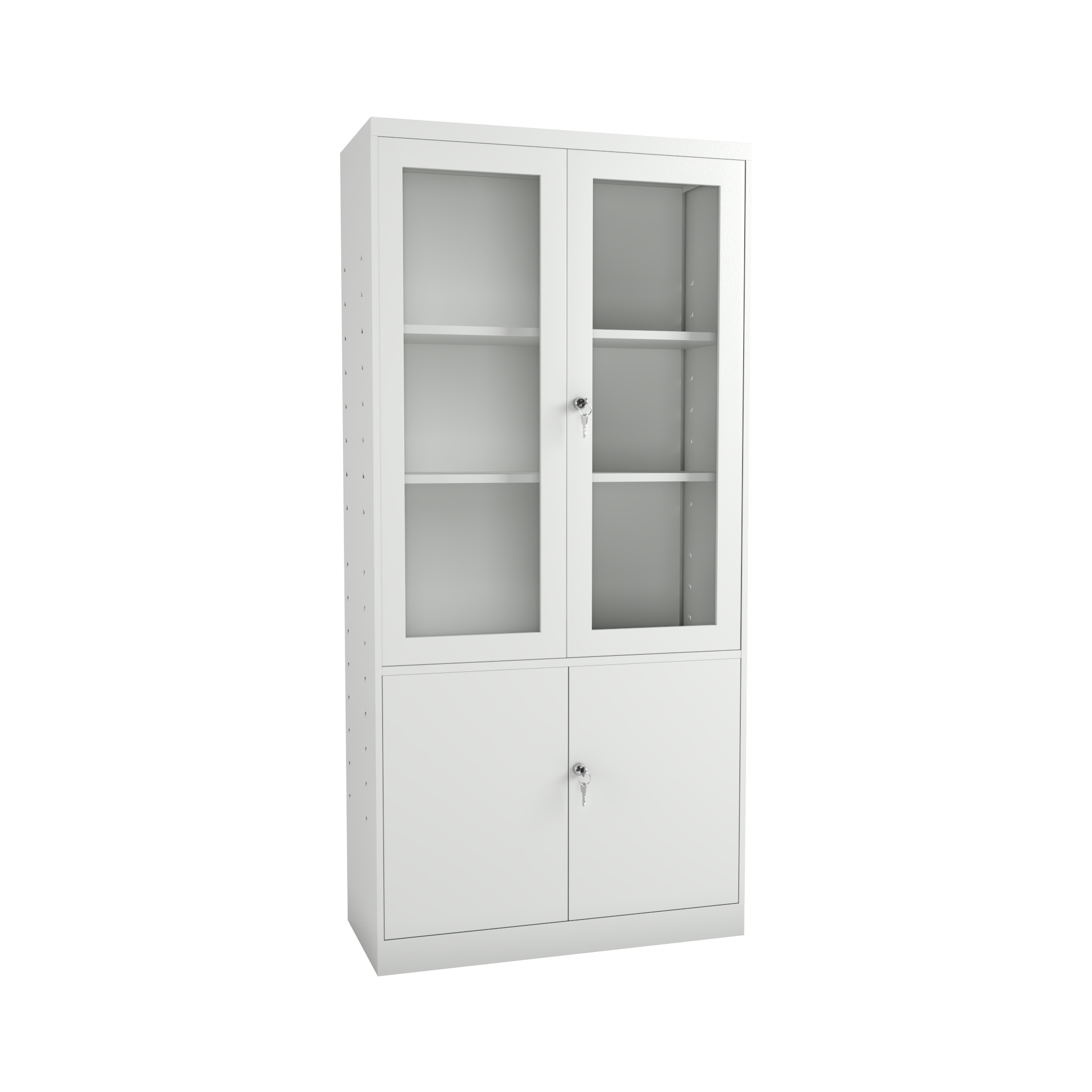 Both the organic glass (plexiglass) doors and the metal doors are equipped with individual locks, each supplied with 2 keys.