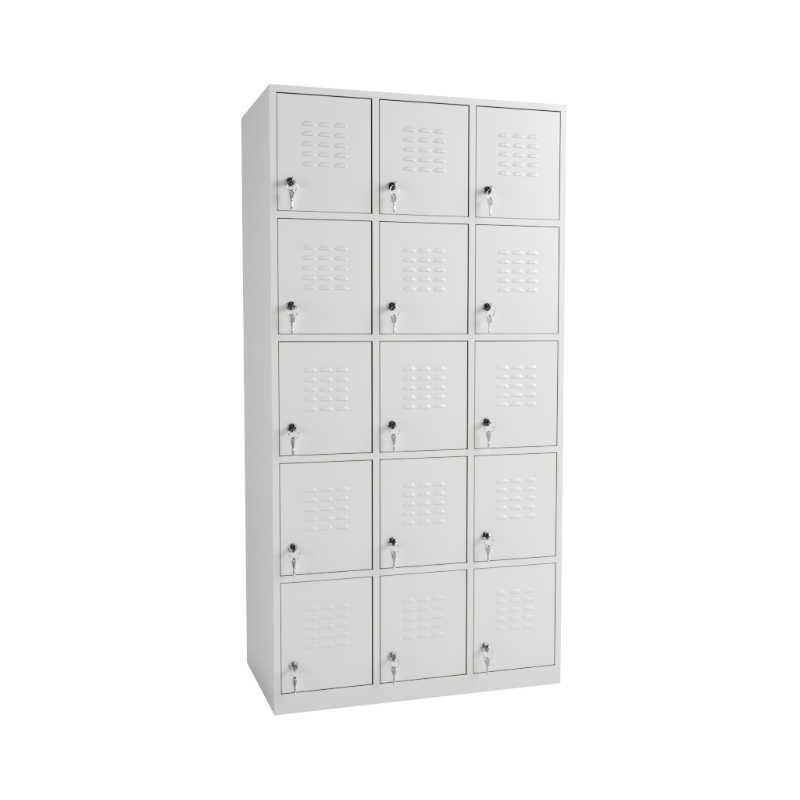 15 uși, fiecare prevăzută cu rigidizare la interior, fante de aerisire, suport etichetă, amortizoare de cauciuc pentru închidere silențioasă. Balamalele ușilor nu sunt vizibile din exterior.